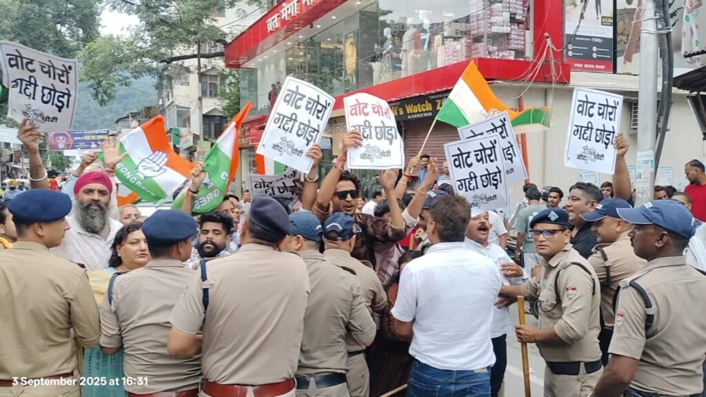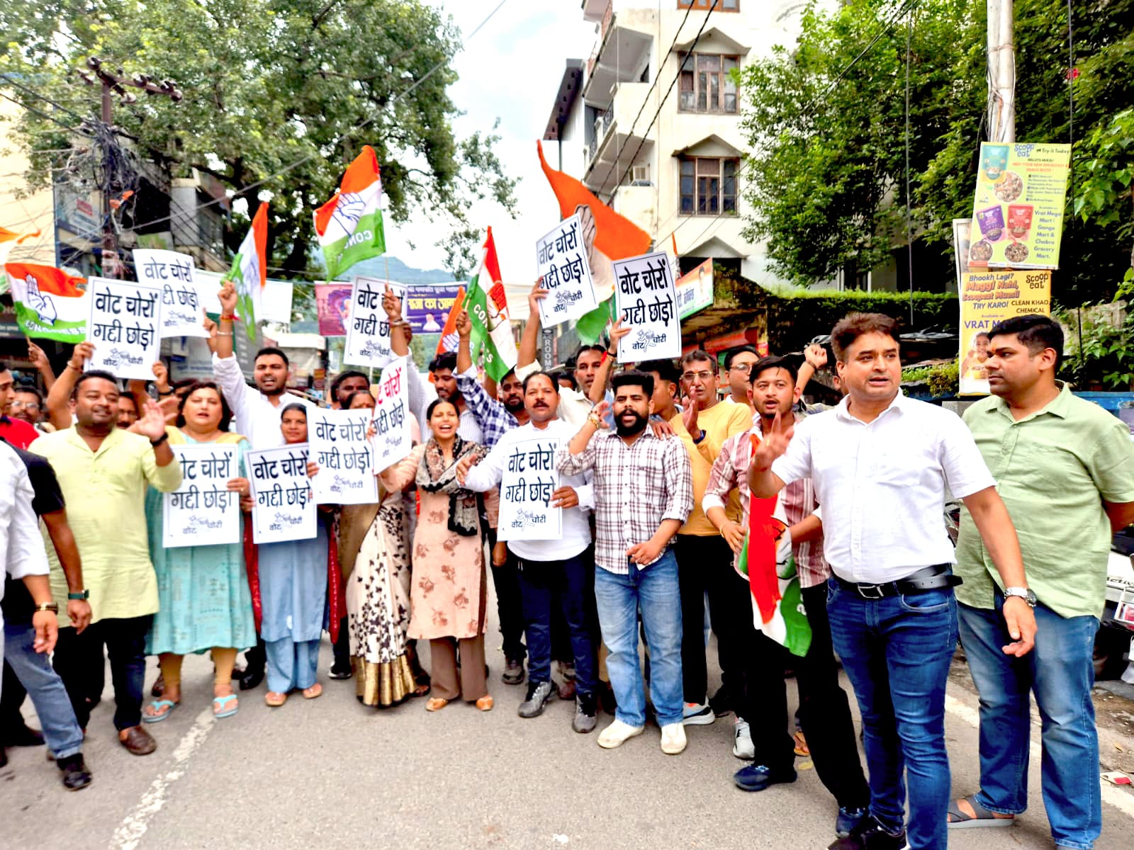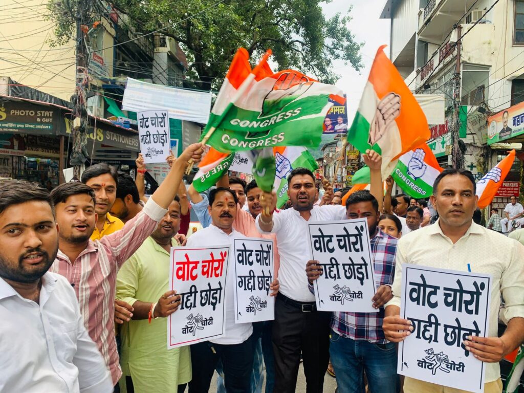 कांग्रेसियों ने वोट चोर-गद्दी छोड़.. के नारे लगाए। कांग्रेसी अब खुलकर राहुल गांधी के समर्थन में खड़े होने लगे हैं और अब राहुल गांधी के लिए सत्ता से भिड़ने को भी तैयार नजर आ रहे हैं। राहुल गांधी की भारत जोड़ो यात्रा, न्याय यात्रा और अब वोटर अधिकार यात्रा की सफलता से उत्साहित ऋषिकेश कांग्रेस अब राहुल गांधी के वोट चोरी को लेकर लगाए आरोपों को आमजन तक पहुंचाने में जुट गए हैं। इसी के तहत अब ऋषिकेश कांग्रेस ने भी इस नारे को सड़क पर आमजन के बीच लगाना शुरू कर दिया है।