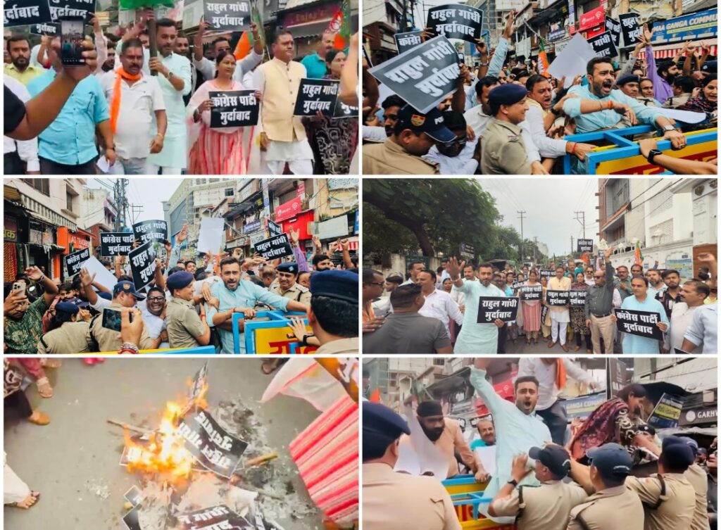 भाजपा जिलाध्यक्ष राजेंद्र तड़ियाल के नेतृत्व में पार्टी कार्यकर्ता रेलवे रोड पर कांग्रेस कार्यालय मार्च के दौरान खूब गरजे। पूर्व मेयर अनीता ममगाईं भी लंबे समय बाद पूरे तेवर में दिखी। अनीता ममगाई कांग्रेसियों से भिड़ने में आगे-आगे दौड़ी, हालांकि उन्हें पुलिस ने रोक लिया। जिला उपाध्यक्ष एवं व्यापार मंडल के नगर महामंत्री प्रतीक कालिया, मंडल अध्यक्ष मनोज ध्यानी, कपिल गुप्ता, शिव कुमार गौतम, कविता शाह समेत कई बड़े नेता समर्थकों के साथ मार्च में शामिल हुए और राहुल गांधी मुर्दाबाद के नारे लगाए। उन्होंने राहुल गांधी व कांग्रेस पर मातृशक्ति का अपमान करने का आरोप लगाया और देश से मांगी मांगने की मांग की।